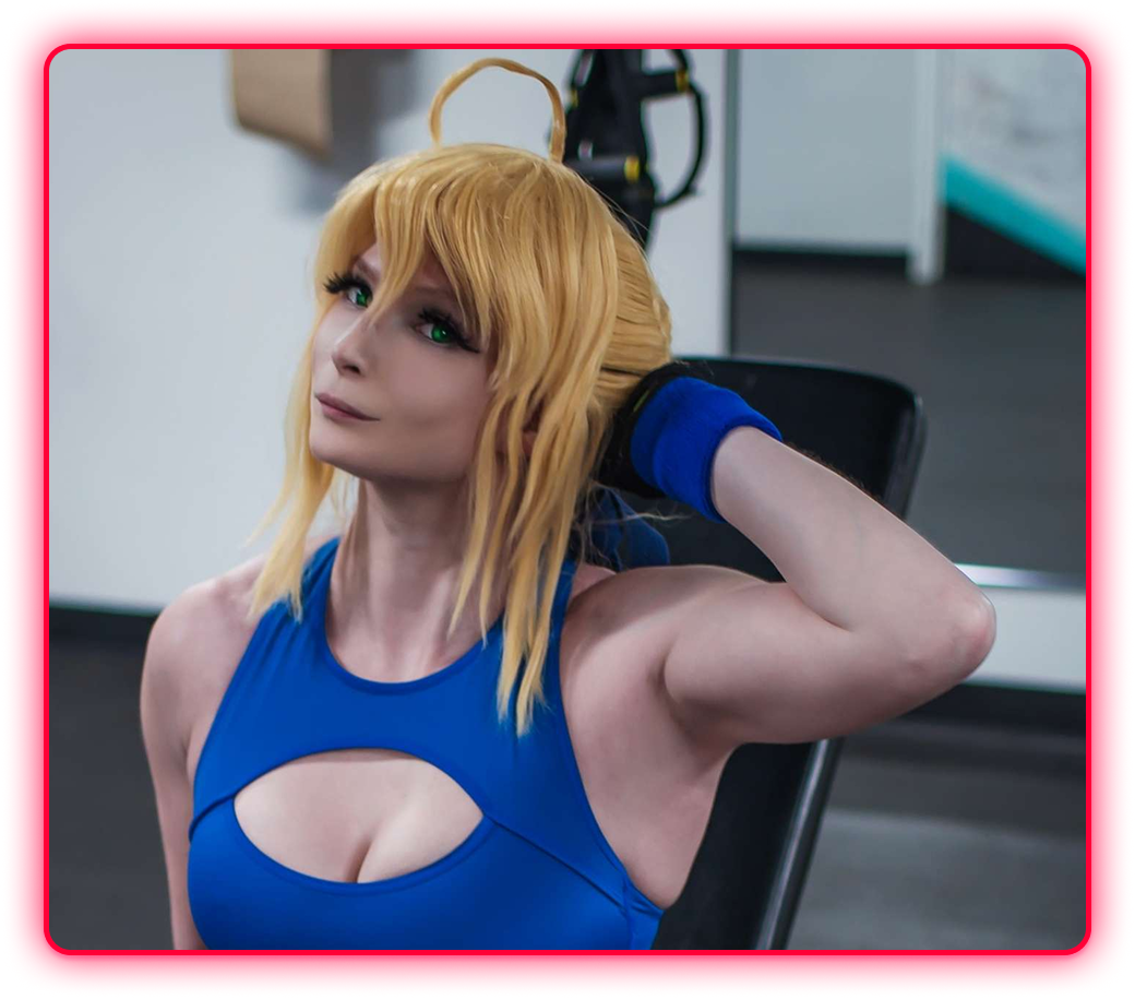 Cosplayer that combines pop culture and fitness, making characters buff just for fun and playfully teasing the internet! She also loves art, one of her most recent projects being the white monster great sword!