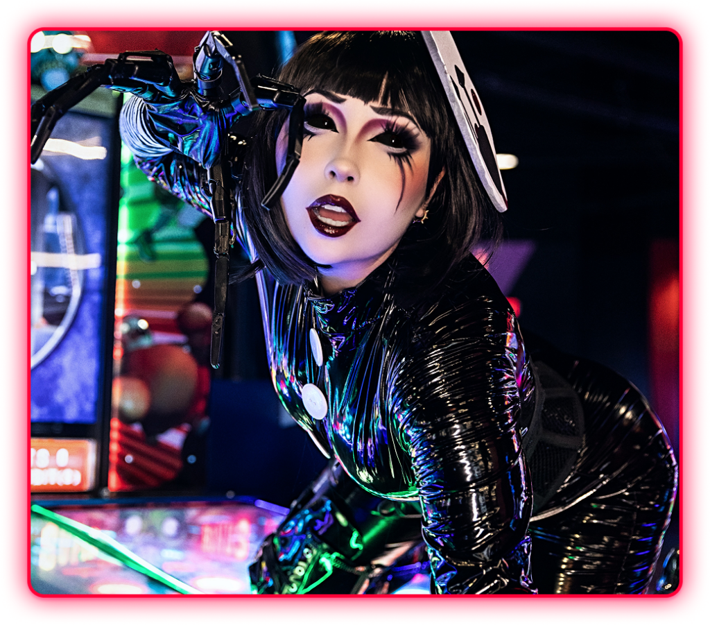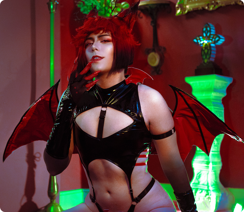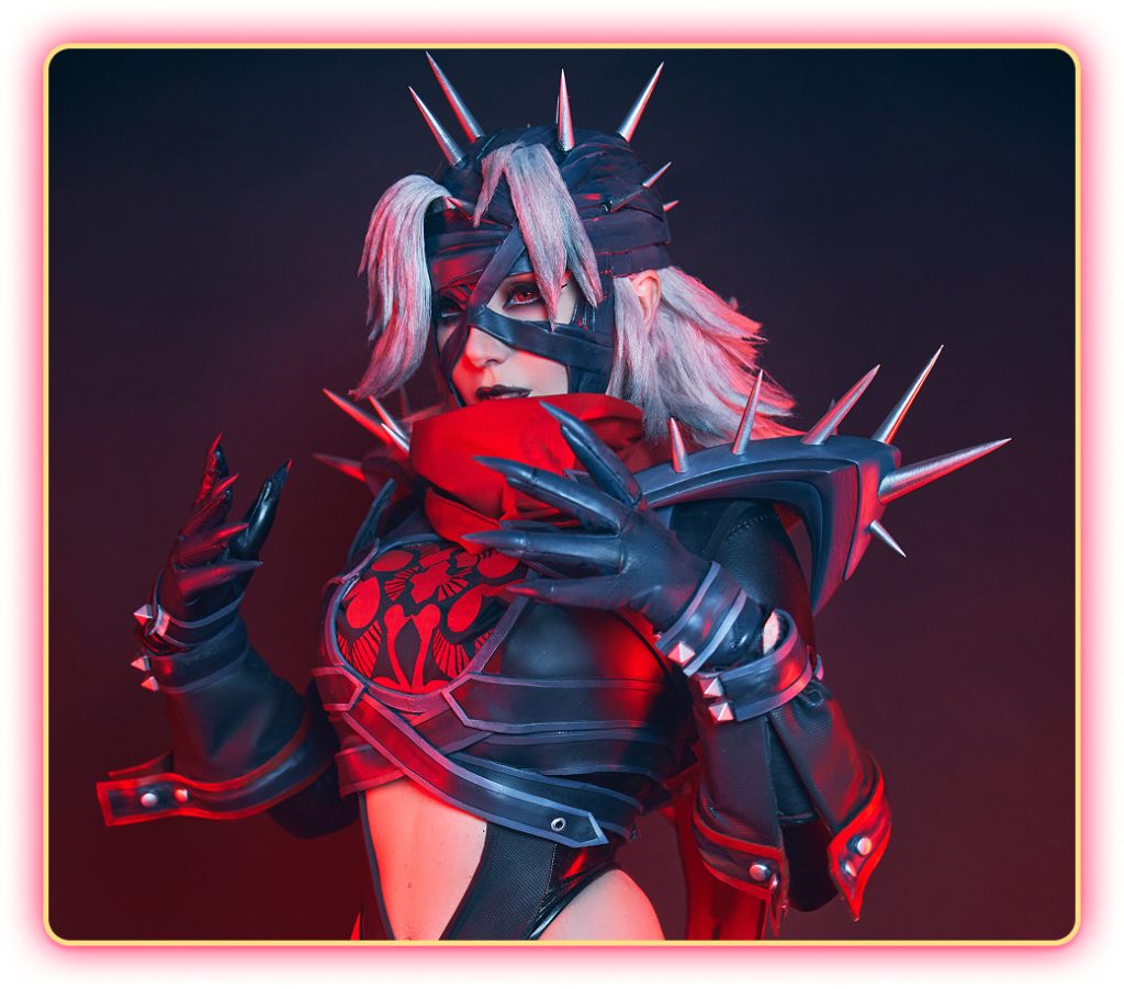 The gothic siren captivating the cosplay world with her seductive aesthetic, razor-sharp confidence, and hauntingly beautiful transformations. Blending dark fantasy with high-glam femme energy, Cynn creates characters that command attention.
