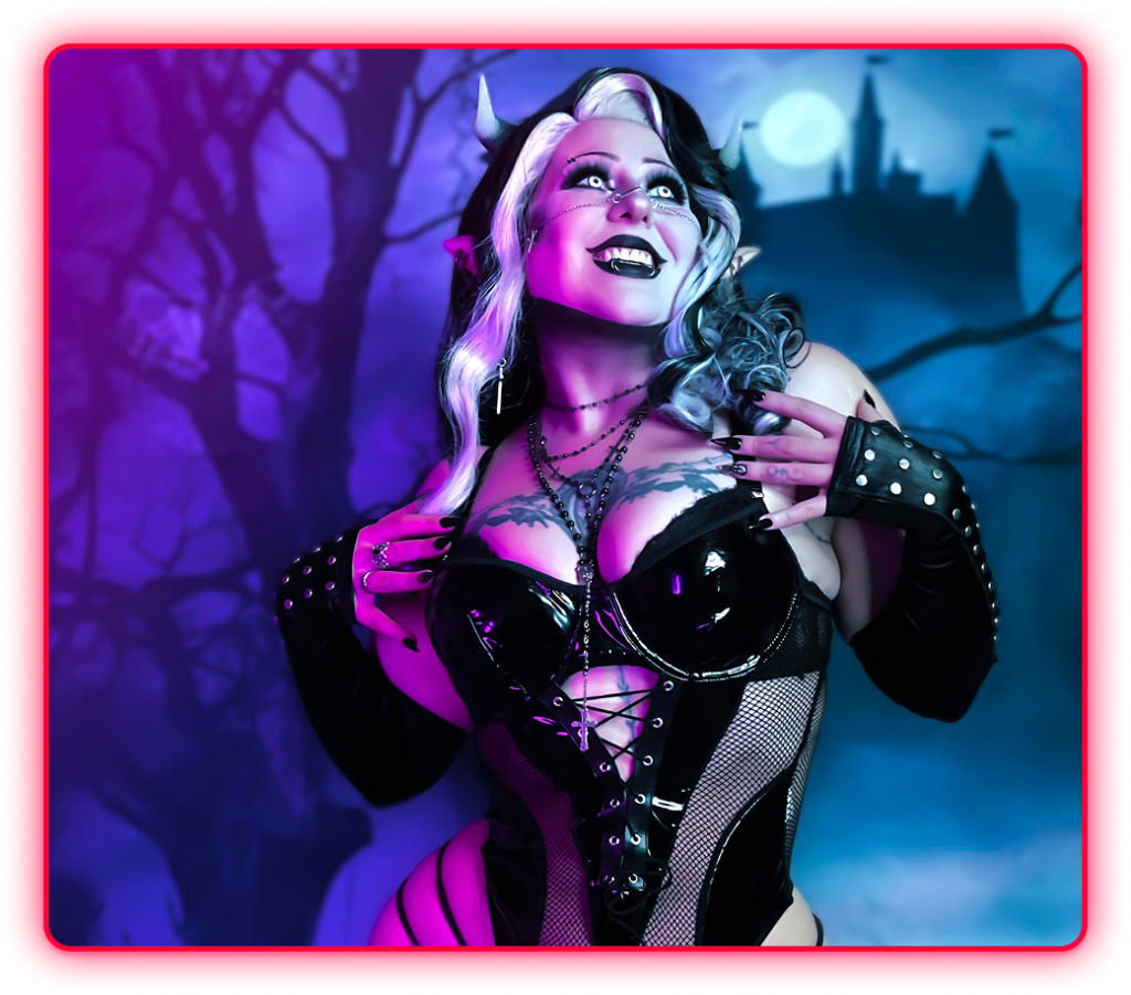 is here to bring a touch of something a bit more androgynous to the table! As a trans man with over 7 years of cosplay experience, 5 as an adult creator, and 15 years in the occult, he balances spooky and sexy in all the right ways.